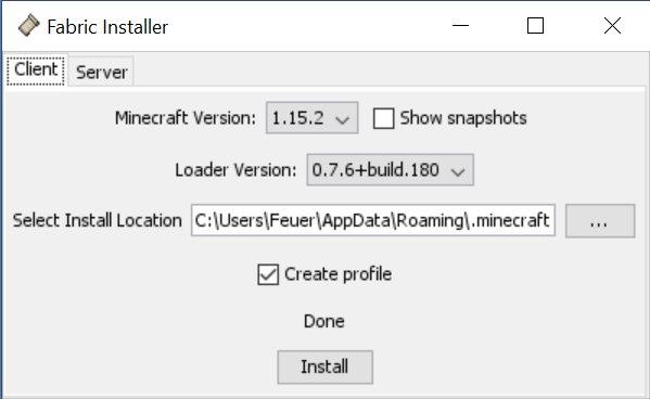 Wir schließen Minecraft INKLUSIVE dem Launcher und führen die frisch heruntergeladene fabric-installer-exe / jar aus. Auch hier achten wir auf die richtige Version, die 1.15.1. Klicken sogleich auf "Install". Es dauert nicht lange und bald erscheint unten ein "Done"