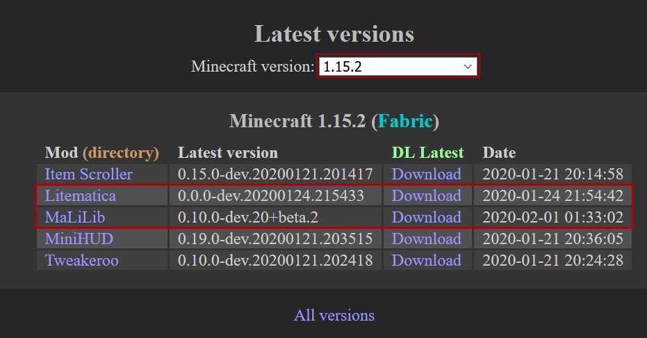 Diese Mod ist die Weiterführung im Geiste von der altbekannten Schematica und erzeugt durchsichtige Geisterblöcke kleinerer Abschnitte in der Welt, welche man ebenso abspeichern kann. In einer sogenannten .litematic Datei.